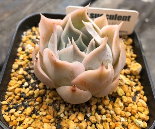 2020.9.26 狩場 多肉とみどりのマルシェフラリエ よその子達とは様子が違う様に見えます。 よその子はフリルが入った薔薇みたいな感じなのに…なぁ?大きくなるとフリルが出てくる? フリルが出易い育て方あるのかな? ※後日リエールのイベントでゆかさんに、…